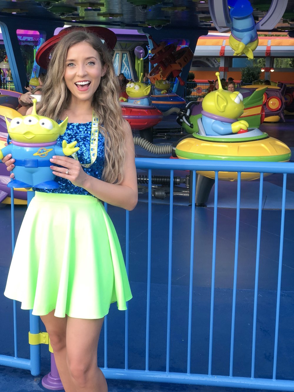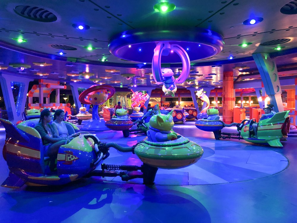 With fun music blasting and flashing lights, this ride felt more like a party! The upbeat energy and the spinning of the spaceships make this ride fun for everybody, not to mention getting to see our favorite green aliens! Be sure to ride this ride at night to really see the lights come out.