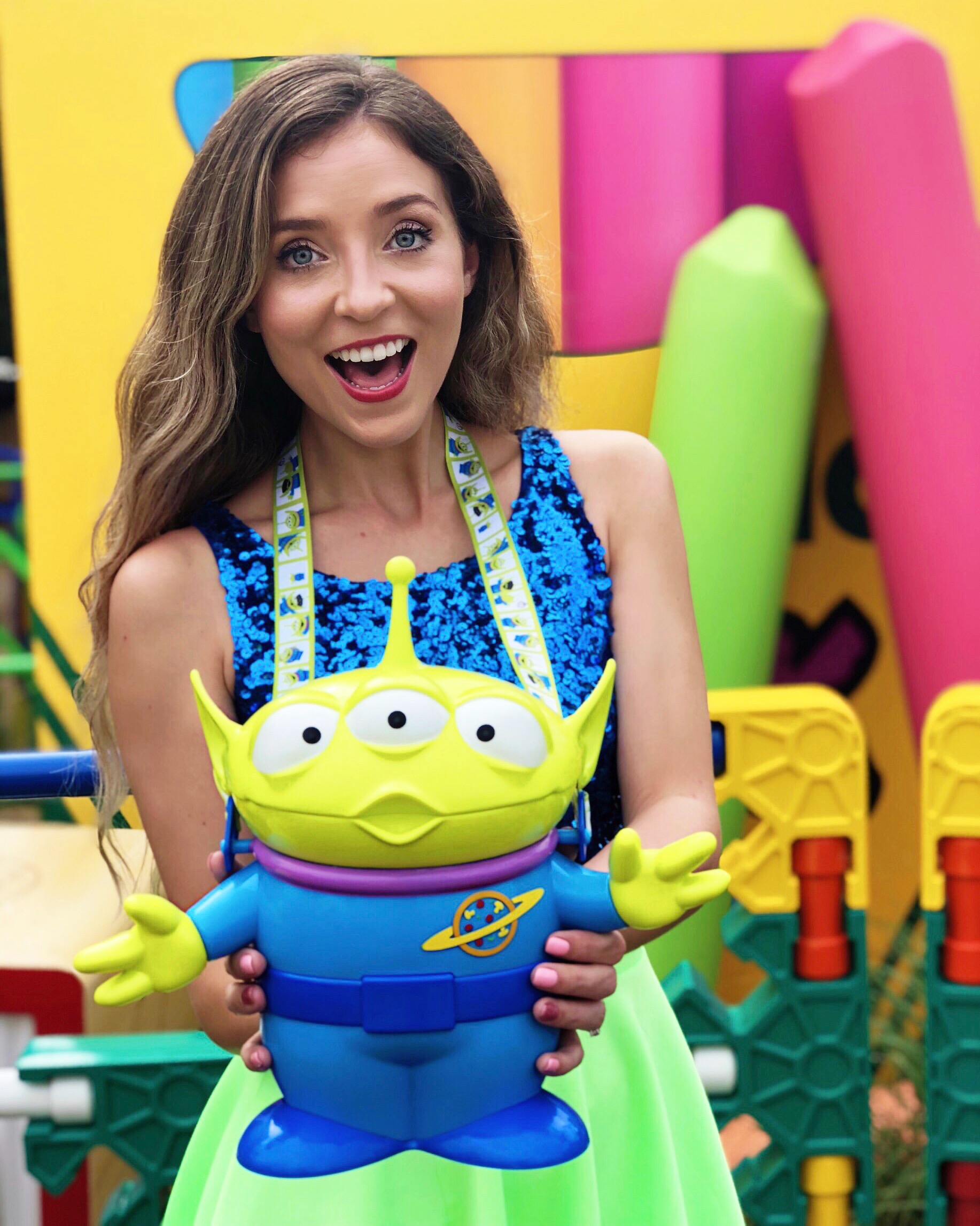 I remember planning this Green Alien outfit for the Toy Story Land grand opening at Hollywood Studios. At the time, I already had this sequin blue top that I had worn for a Snow White outfit (that you can see here). So this was when I first decided to invest in this neon green skater skirt, and I’m so glad I did! To complete a green alien disneybound outfit, all you need is a green alien accessory. Here are a few that you can purchase: