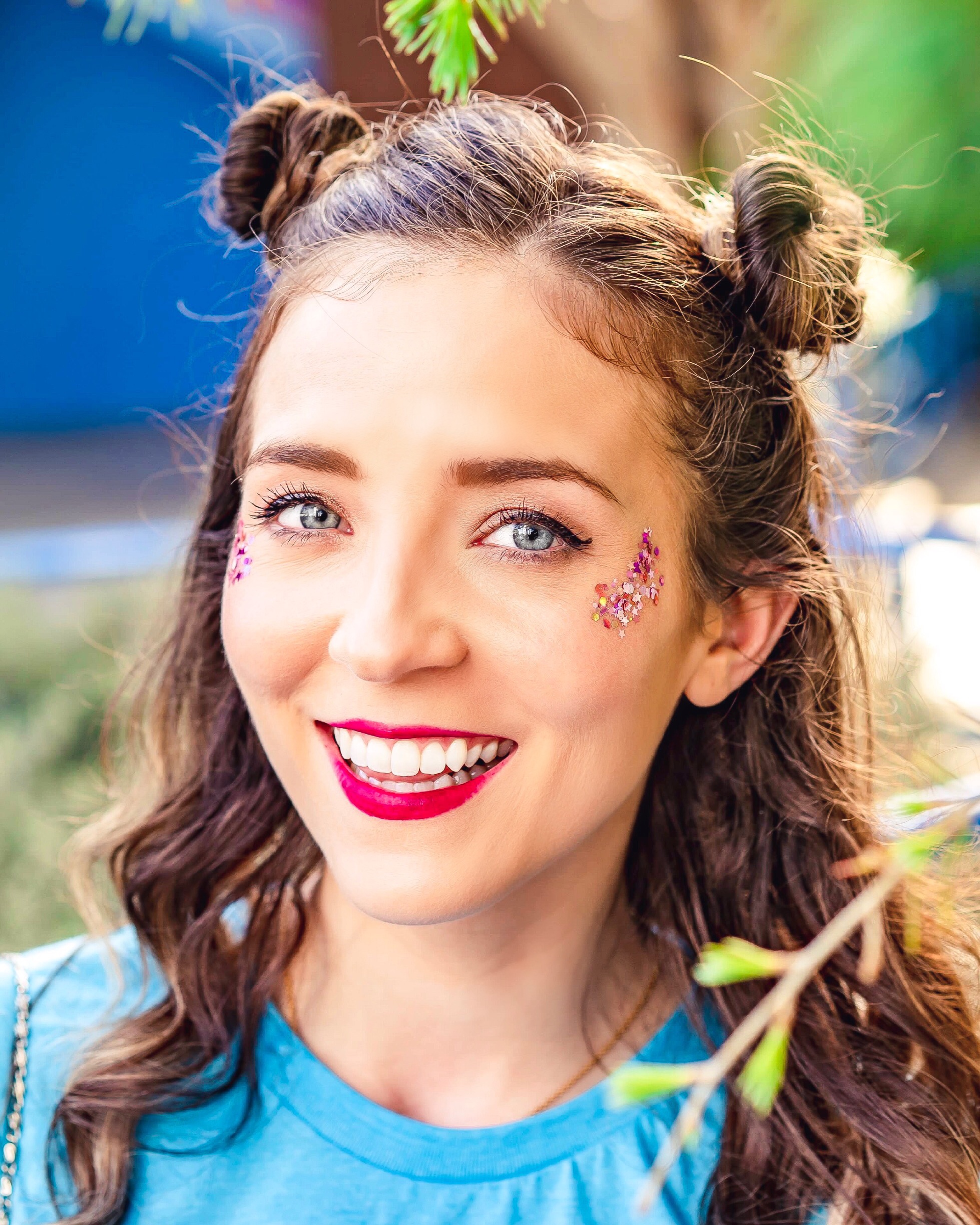 To add the final touch to this Zenon outfit, I added some pink face glitter. Can I just say how happy I am that glitter is coming back in style? Really I’m happy that 90’s style, in general, is coming back. Everything back then had such fun and bright colors. This Uniglitter is so easy to wear and a little goes a long way. So you should definitely think about adding some to your Zenon outfit!