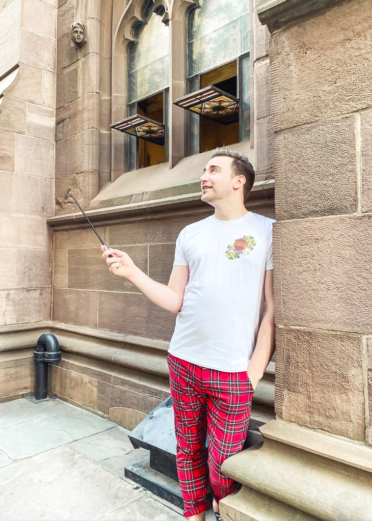 Speaking of Wizarding World style, my friend Eric runs a Harry Potter style Instagram page. So it’s no wonder that he put together a completely fabulous Gryffindor outfit. He decided to pair his Gryffindor Head Witch shirt with the most adorable red plaid pants. Leave it to a Gryffindor to rock this bold, fiery look. I love it so much!