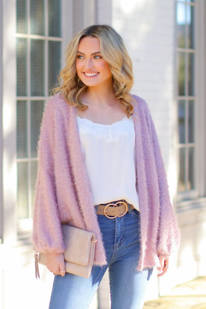The softer blush color of this cardigan is absolutely gorgeous. Cardigans are my fave pieces to purchase because you get to style them so many different ways. This blush cardigan would make for a beautiful V-day look!
