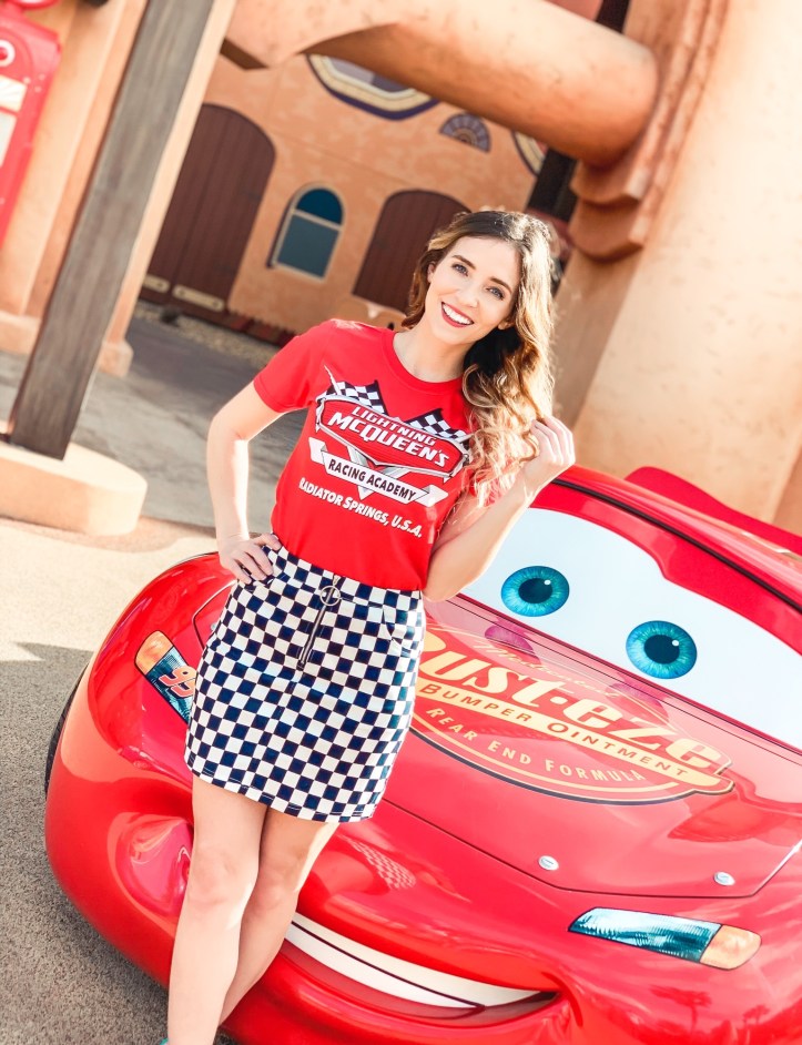 Racers, start your engines! This Lightning McQueen Disneybound Outfit is so much fun. I paired this Racing Academy tee with a checkered skirt for the ultimate Cars look. You can wear this to Cars Land in Disneyland or at Art of Animation Resort in Disney to get a photo with Lightning McQueen himself.